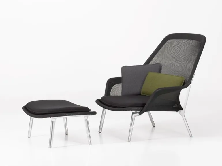 Vitra’s Slow Chair is an exceptionally light and comfortable armchair designed by Ronan and Erwan Bouroullec. The comfortability of Slow Chair comes from the fabric sling cover that is stretched over the metal frame. Despite its generous size, the Slow Chair is a lightweight and easily movable furniture, and the translucent knit emphasizes its lightness. The combination is perfected with thin seat and back cushions and appealing colors.