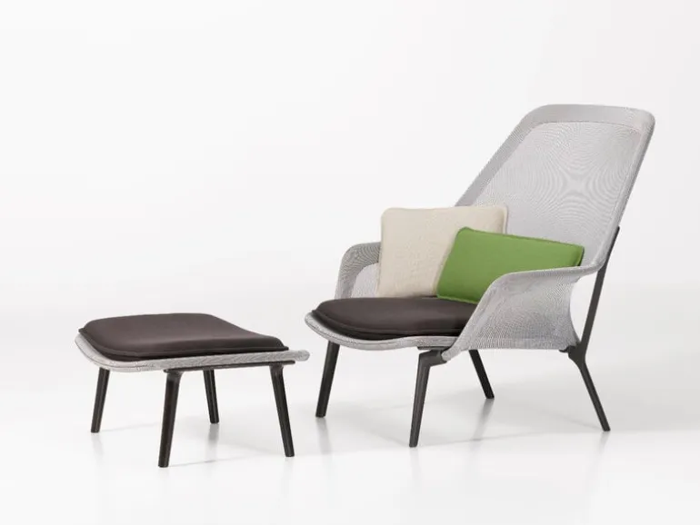Vitra’s Slow Chair is an exceptionally light and comfortable armchair designed by Ronan and Erwan Bouroullec. The comfortability of Slow Chair comes from the fabric sling cover that is stretched over the metal frame. Despite its generous size, the Slow Chair is a lightweight and easily movable furniture, and the translucent knit emphasizes its lightness. The combination is perfected with thin seat and back cushions and appealing colors.