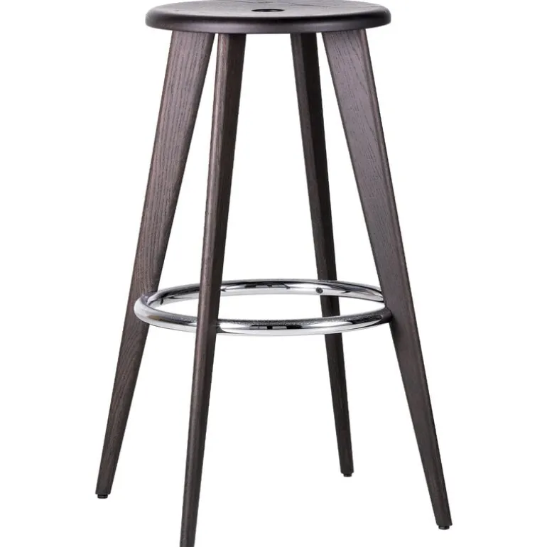 Vitra’s Tabouret Haut is a streamlined wooden bar stool created by the French designer Jean Prouvé in 1942. Tabouret Haut consists of a thin, round oak seat, four sloping legs and chromed steel ring, which stabilizes the structure and also functions as a pleasant footrest. The timeless, uncomplicated design of Tabouret Haut will easily find its place in many kinds of spaces and interiors.