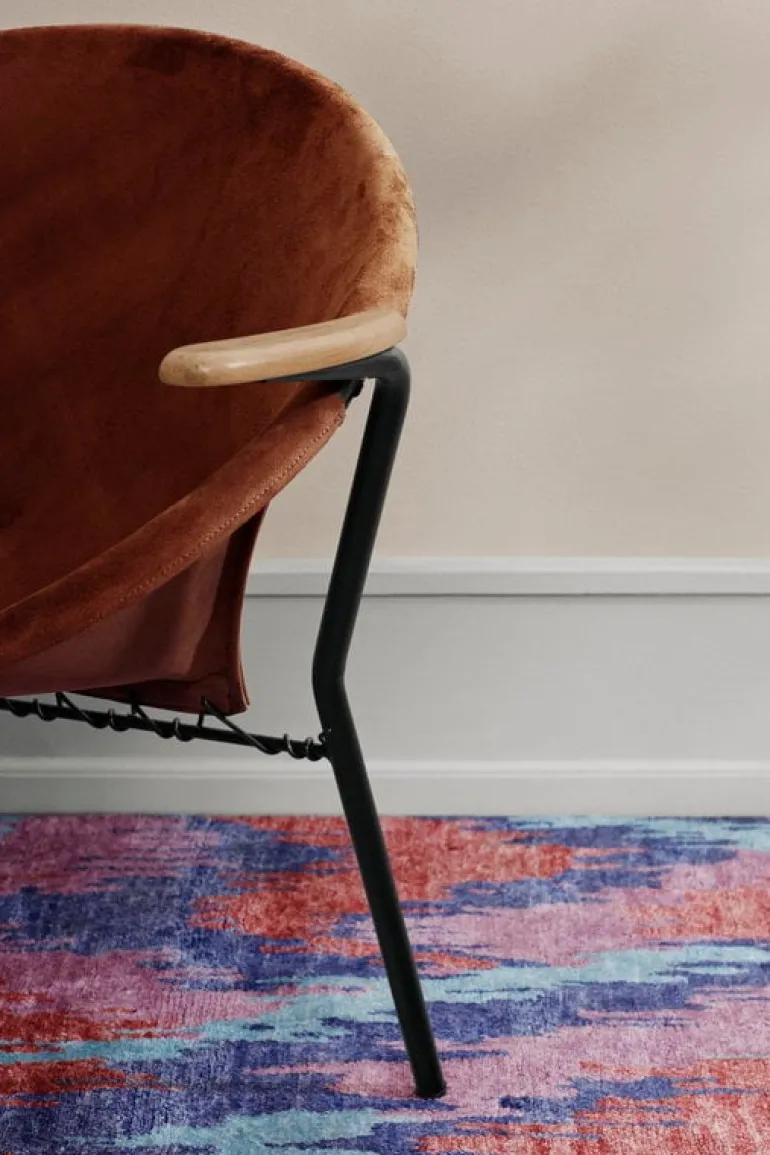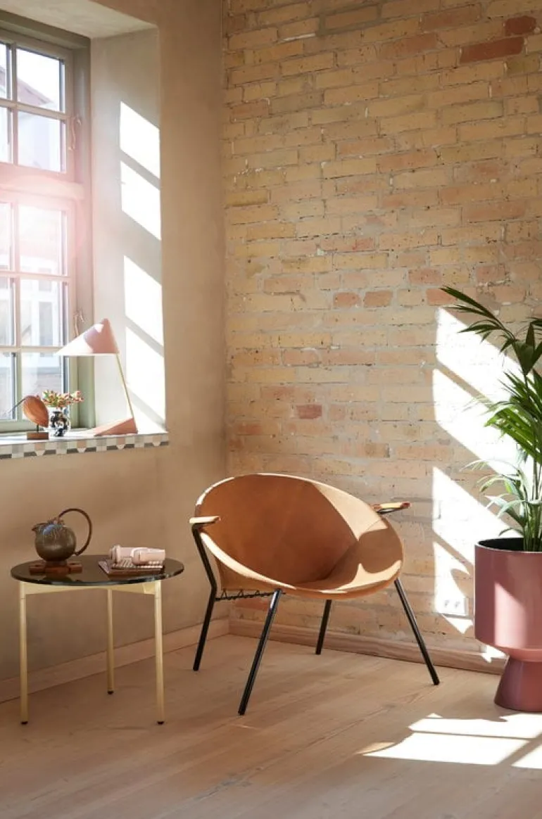 Balloon lounge chair, designed by Hans Olsen in 1955, is a joyful piece of Danish design characterized by a round silhouette and exquisite materials. Re-released by Warm Nordic as part of the collection of Danish design classics, Balloon captures the spirit of the 1950s by combining a playful, experimental attitude with skilled craftsmanship and sophisticated appearance. Handcrafted in Denmark, the round steel frame of Balloon has an inviting suede seat. The armrests are solid teak, and the leather has been fastened with laces that make a decorative detail to the back of the chair. Thanks to its lightweight structure and fascinating appearance from front to the back, Balloon will settle both by the wall or to the center of the room.