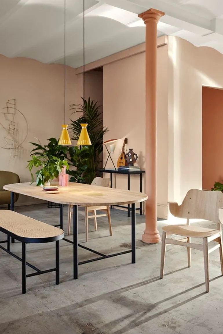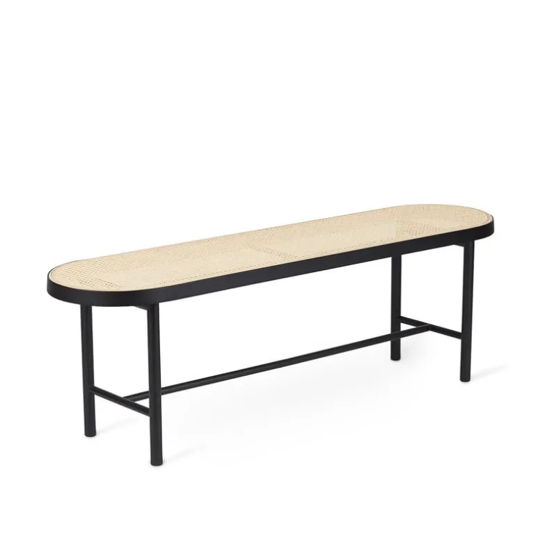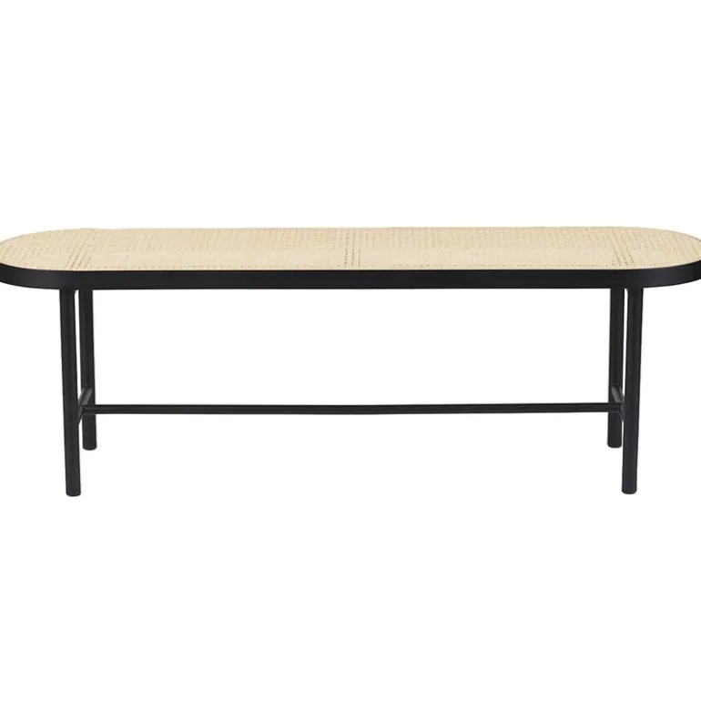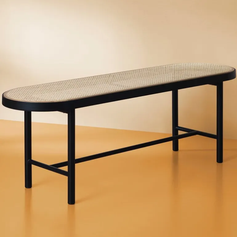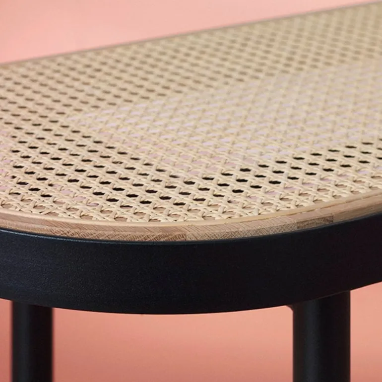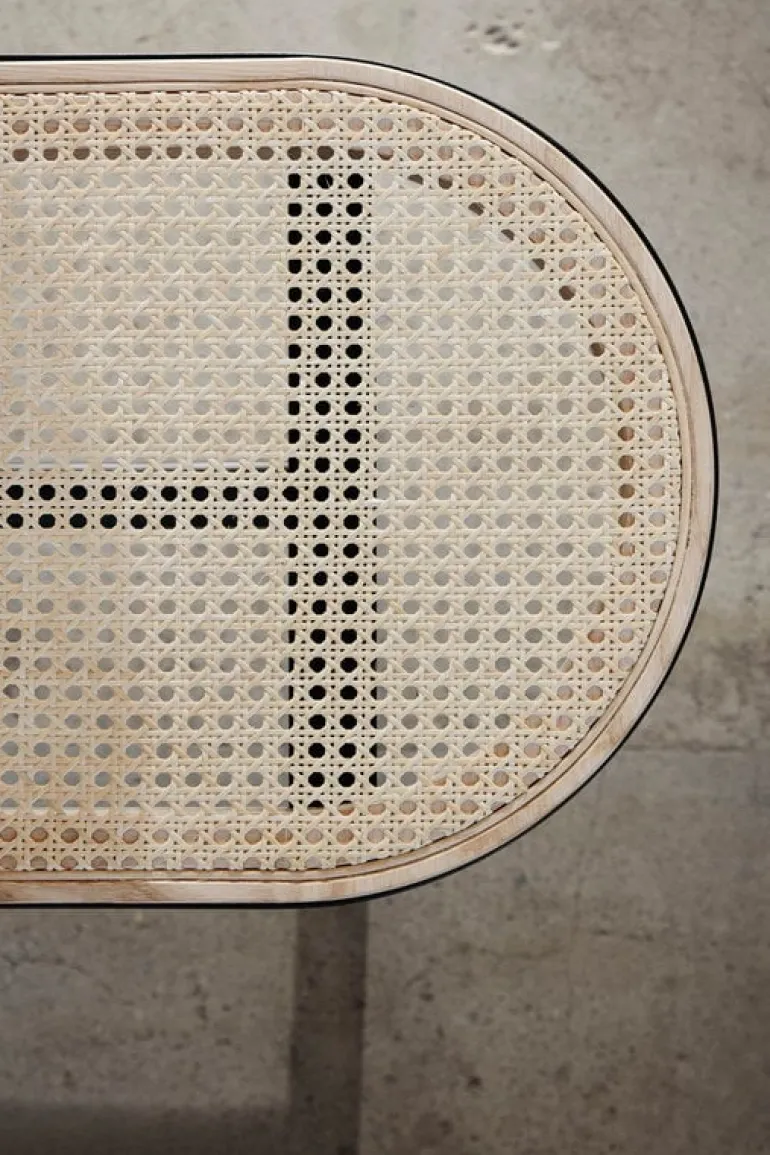 Be My Guest bench, designed by Charlotte Høncke for the Danish Warm Nordic, combines an airy metal frame with a sophisticated wicker seat. The lightweight, oval-shaped Be My Guest bench is a great companion for the dining table of the same range, and it also functions as an independent bench or side table in any room. A lovable union of classic and contemporary references, Be My Guest bench and dining table have been manufactured in Denmark and released in 2017.