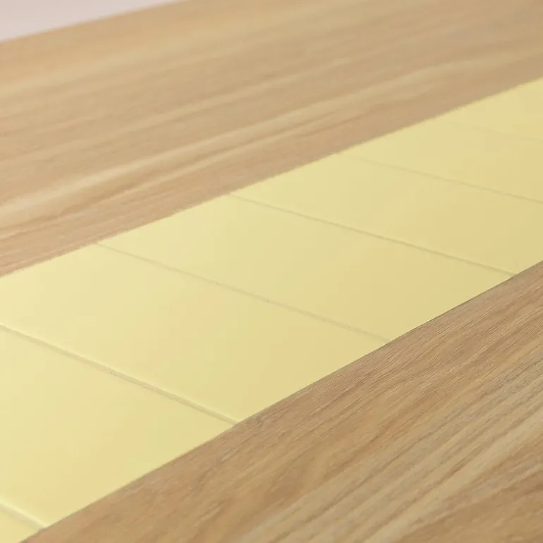 Be My Guest table, designed by Charlotte Høncke for the Danish Warm Nordic, combines an airy metal frame with a sophisticated oak wood top and ceramic tiles. Inspired by the dining tables of the 1960s, the tile row makes both an attractive detail and a functional element, as you can safely place hot teapots and pans on it. The lightweight, oval-shaped Be My Guest table is a great companion for the bench of the same range. A lovable combination of classic and contemporary references, Be My Guest bench and dining table have been manufactured in Denmark and released in 2017.