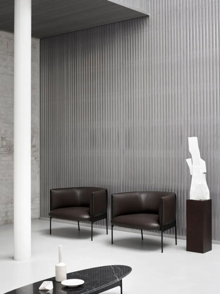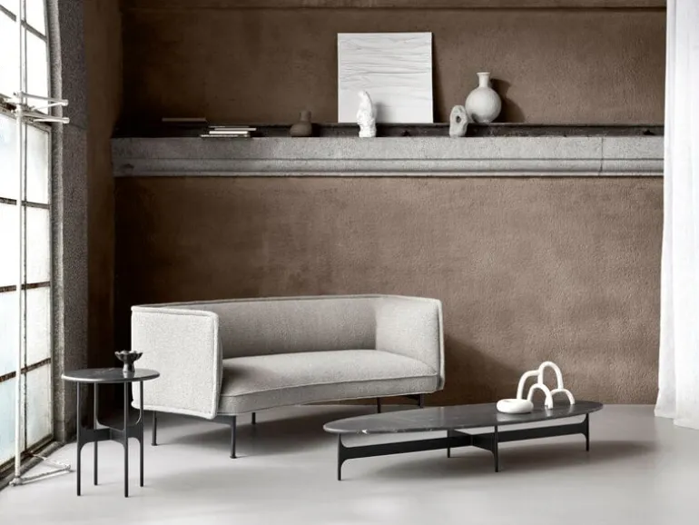 Wendelbo’s Floema sofa table stands out as the eye-catcher in any room. The minimalist oval sofa table gets its distinctive character from the combination of the elegant metal leg that seamlessly completes the marble tabletop. The natural, changing patterns of the marble only add to the unique look of the table.