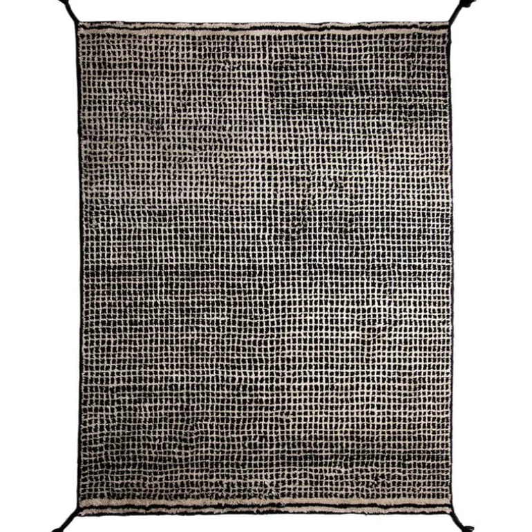 The Grid rug has an asymmetrical pattern and braided wool fringes on each corner. The soft Grid rug is perfect for the living room or lounge area and is available in several different colors and sizes.