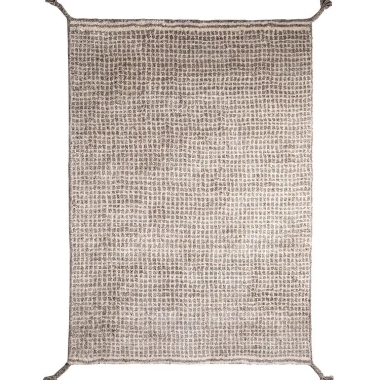 The Grid rug has an asymmetrical pattern and braided wool fringes on each corner. The soft Grid rug is perfect for the living room or lounge area and is available in several different colors and sizes.