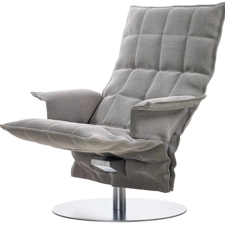 The K chair by the Finnish company Woodnotes is a generous lounge chair with a relaxed, refined appearance that works equally well in private and public environments. The K chair has a robust steel tube frame and removable upholstery made of a blend of paper yarn and cotton with soil-repellent treatment. The visible steel parts are coated with a matt chrome finish. This K chair is perfected with comfortable armrests, and if you like, you can complement the ultimate lounging experience with the K ottoman.