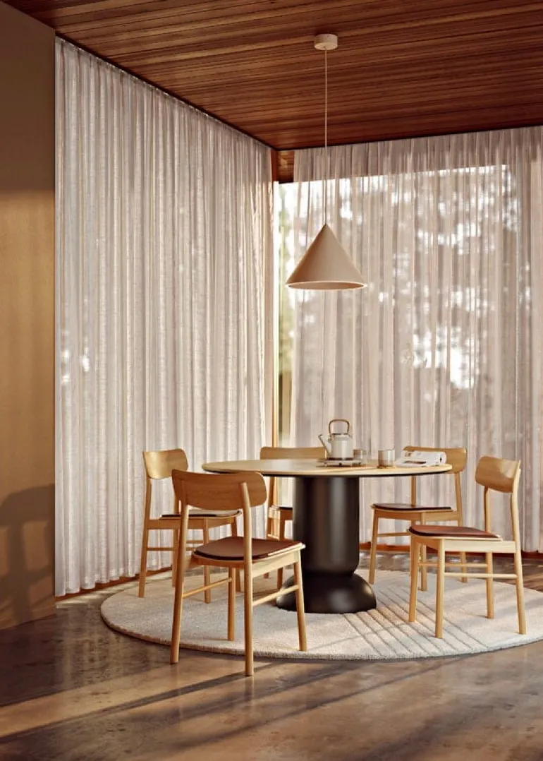 Woud’s minimalist Annular pendant light features a classic cone-shaped shade and an unexpected source of illumination: an LED light ring encircles the lower perimeter of the cone. Designed by MSDS Studio, the Annular pendant is crafted from spun, painted aluminum and includes a textile cord in a matching tone. Annular is a stylish addition above any table and a must-have for those who appreciate elegant geometric forms.