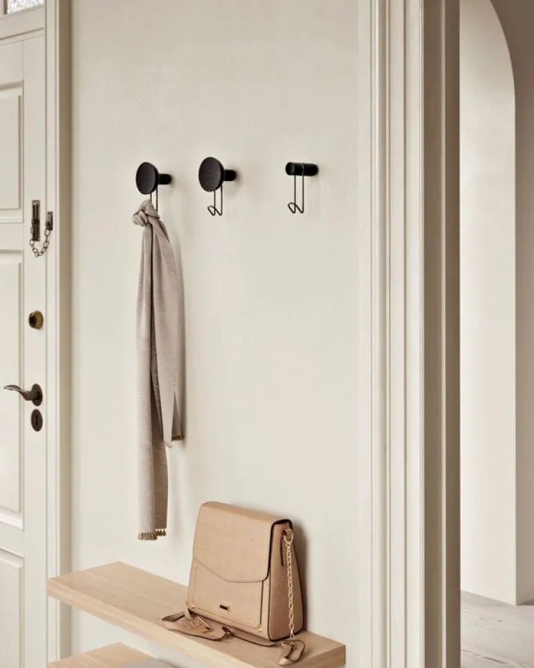 Woud’s Around wall hanger is a handy and versatile wall-mounted coat rack that combines a solid wood hanger with a metal hook placed underneath it. Designed by 201 Design Studio, the Around wall hanger provides perfect storage space for coats and bags in the hallway, morning gowns in the bedroom or towels and robes in the bathroom. The Around wall hangers also work great when mounted in groups, and with different material and size options available, you can create a fully unique storage system on your wall.