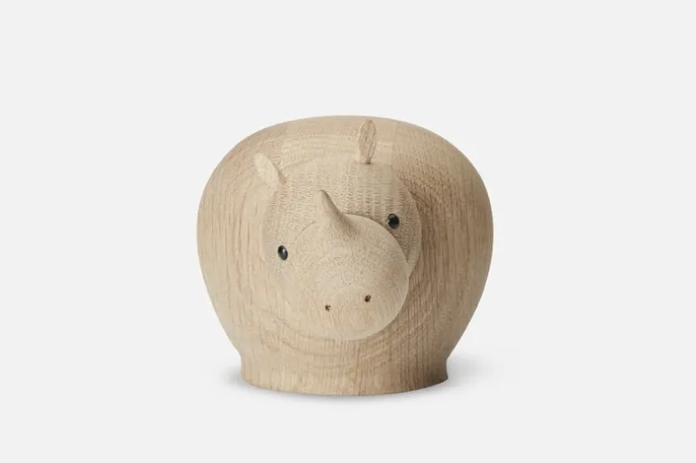 Woud’s Rina Rhinoceros is a charming wooden rhino, crafted of solid oak, with a head that can be tilted to give the creature a wondering look. Designed by Steffen Juul, Rina continues the tradition of expressive wooden sculptures, popular among Danish architects and designers. Gazing back at you with its deep black eyes, Rina Rhinoceros will bring you joy whether placed on a shelf and sideboard or gifted to someone special.