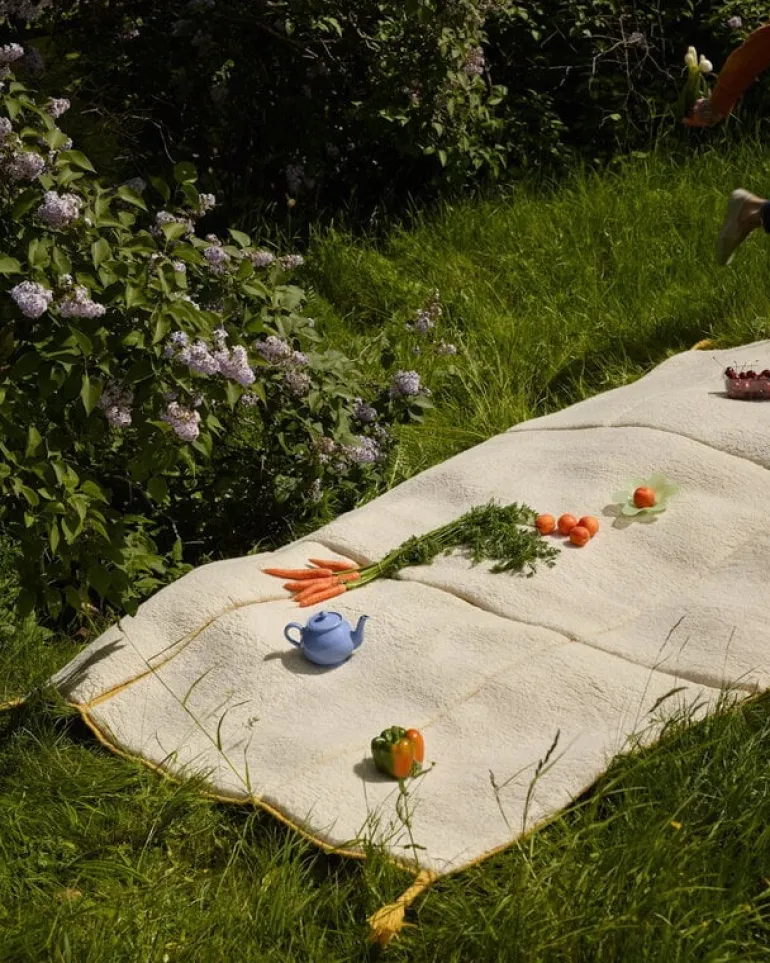 The Line rug is part of the Patchwork collection, the first launch of the Finnish rug brand Woven Works. Designed by Anna Pirkola and Ina Nordbäck of Studio Plenty, the hand-knotted wool rugs of the Patchwork collection charm with their minimalist, graphic patterns and the softness and warmth of wool. The rugs are woven in India from New Zealand wool and recycled cotton warp.